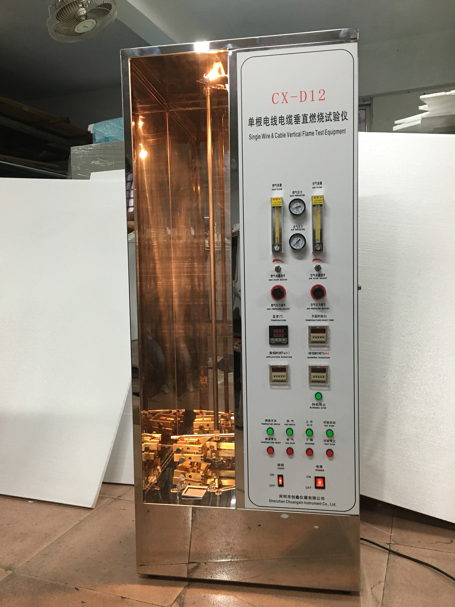 1、材料燃燒試驗(yàn)設(shè)備:灼熱絲試驗(yàn)儀,漏電起痕試驗(yàn)儀,針焰試驗(yàn)儀,水平垂直燃燒試驗(yàn)儀等;